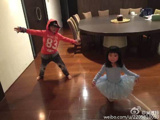 照片里,“姐姐”grace身穿芭蕾舞裙,显得十分呆萌,不少网友发现其个子也长高了好多,joe则是打扮的酷酷的,走酷炫路线。吴速玲还在微博上写道:“谢谢我家可爱的二个宝贝为我献舞~实在太可愛了!谢谢gary的晚餐,谢谢大家的生日祝福!ㄧ起成長,ㄧ起學習快樂生活!!!”