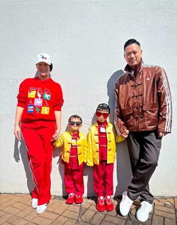 胡杏儿晒一家五口全家福 三个儿子穿黄马褂喜迎蛇年