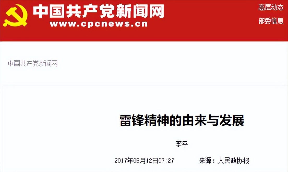 中国共产党新闻网——雷锋精神的由来与发展 2017年05月12日