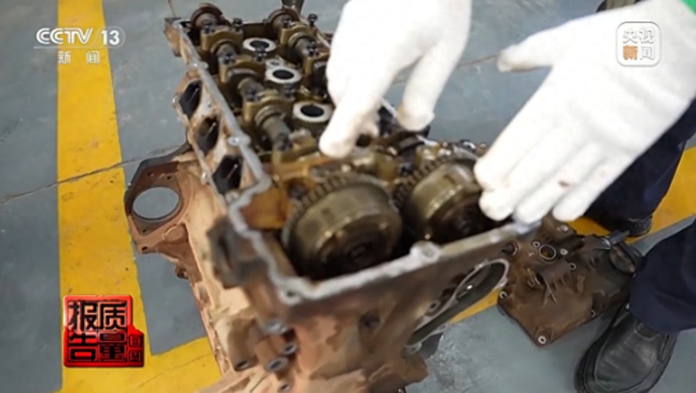 在云南省玉溪市的一家大型汽车修理厂,一辆更换机油后出现故障的汽车的发动机被拆解,技术负责人发现机油产生的磨损过大,导致整个发动机报废。