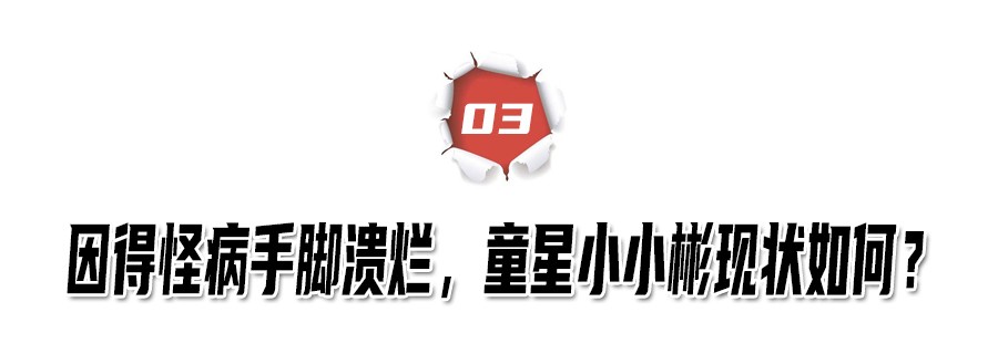 你愿意让你的孩子当童星,挣钱养家吗?他是继郝劭文之后最受关注的中国台湾童星,2岁出道,5岁成名,挣来的1800万被亲爸后妈挥霍殆尽,自己得了怪病却没有钱治疗,导致手脚溃烂,他就是小小彬。