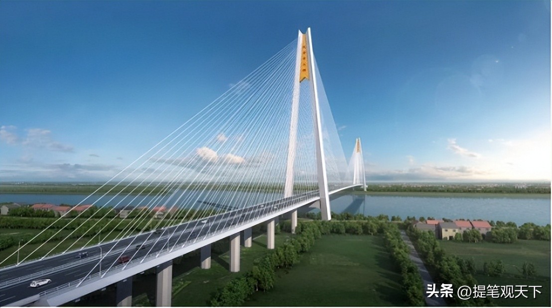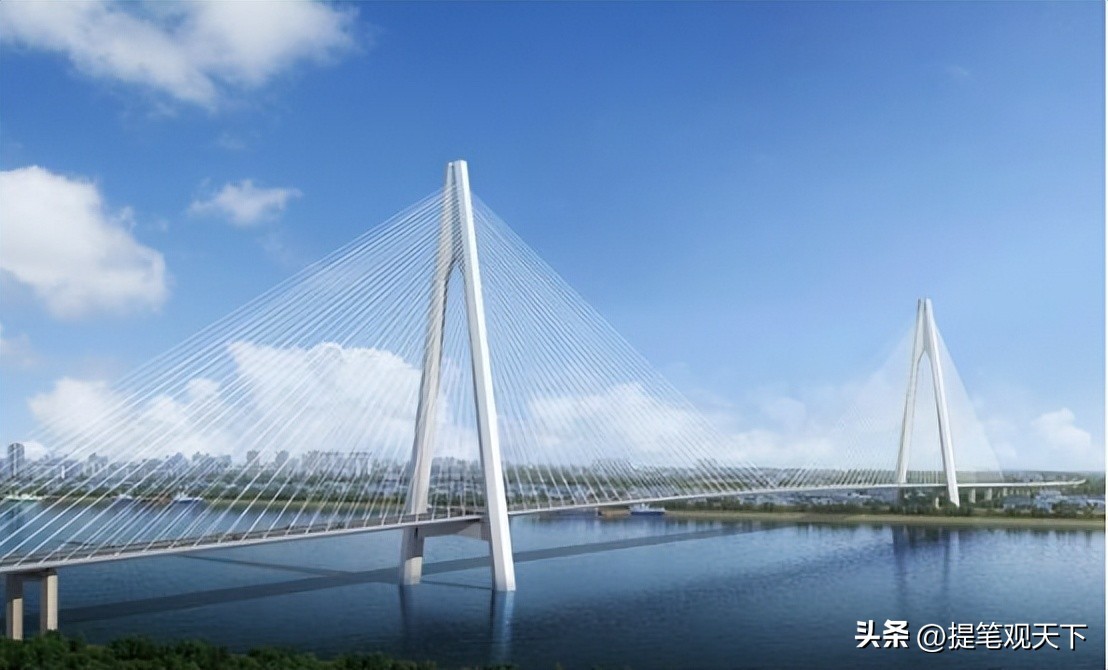 其中,观音寺长江大桥是武汉至松滋高速公路江陵至松滋段过江通道工程的关键性控制工程。主跨1160m的混合式钢-UHPC组合梁斜拉桥,主桥总长1860m。观音寺长江大桥建成后将成为世界第一大跨径公路斜拉桥,也是世界首座超过千米的混合式组合梁斜拉桥。
