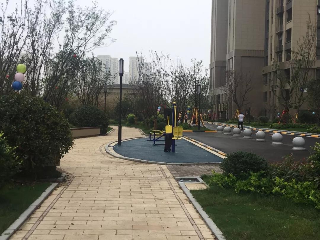 实际的游乐场看起来比较空旷、地面上运动器材放置的比较少。希望后期能多增加一些,使小区的娱乐性更加丰富。