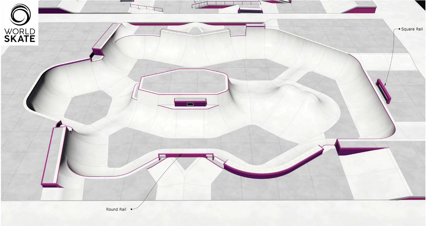 这是东京奥运会滑板公园赛场地设计图↓