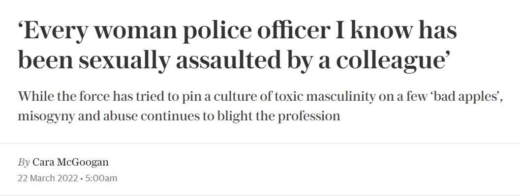 以往,警局会将厌女症归咎于一些流氓警察,他们说队伍里有害群之马,但大部分是好的。