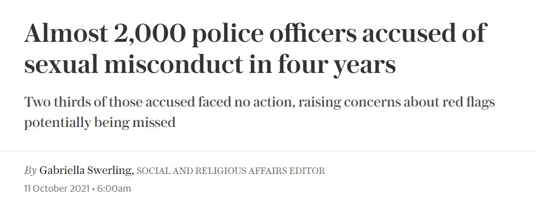 媒体统计显示,从2017年到2020年,英国有1980起针对警察的性侵指控,其中包括95起强奸指控和18起儿童性犯罪指控。