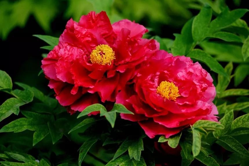 大红色的牡丹花,争相开放!