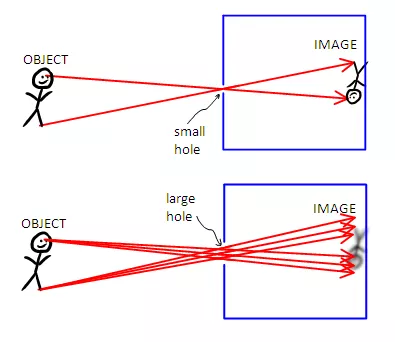 然而,如果小孔过小,则衍射效应不能忽略(对就是泊松亮斑的衍射,只不过这里是圆孔衍射),同样导致光的发散和像的模糊。同时考虑这两个效应,一般认为小孔直径d与反射光波长λ、针孔到屏的距离L的最佳关系为