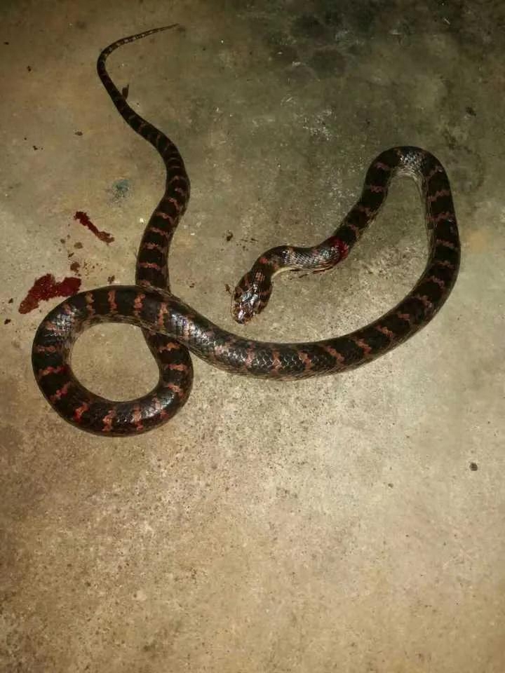桑根蛇,也就是赤练蛇,我们当地人叫“火三根”,从笔者记事起,祖祖辈辈都认为火赤练蛇是剧毒蛇,可是偏偏有文章介绍说“火三根”和“乌梢蛇”,一样属于无毒蛇类。