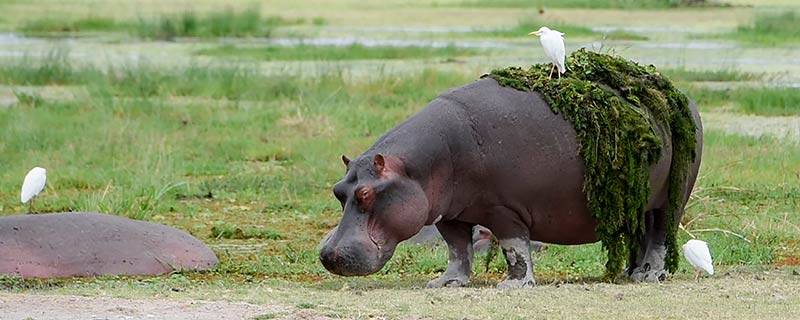 河马的特点:躯体庞大且拙笨,四肢粗短,吻宽嘴大,鼻孔在吻端的上面,跟上方的耳朵以及眼睛呈一条直线。