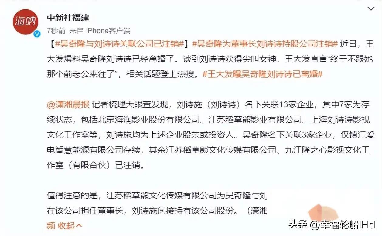 虽然王大发的爆料可信度有待考证,但网友们对吴奇隆与刘诗诗婚姻状况的关注却愈发热烈,有不少网友翻出了吴奇隆在婚姻中多次对刘诗诗的不当行为。