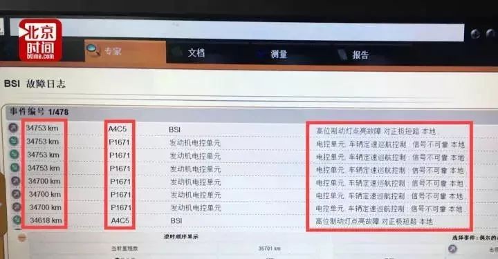 毛先生的车开了3.5万公里左右,他称检测到的故障都有发生时对应的公里数。