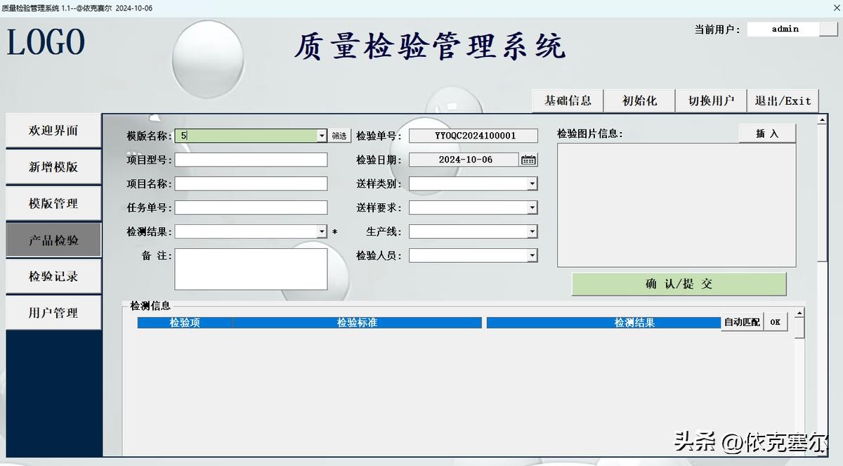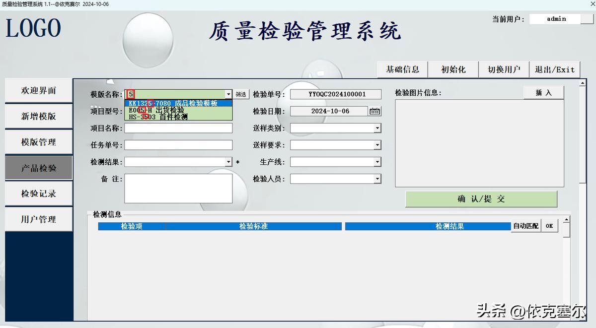 4、检验单号:检验单号会在提交是自动检测并生成,避免局域网多用户同时提交检验单号重复。