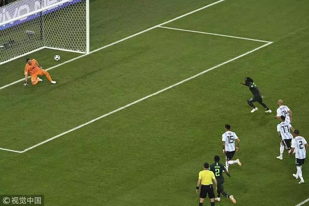 下半场风云突变,第48分钟,马斯切拉诺在禁区内的犯规,被裁判直接判罚了点球,摩西主罚命中,1:1,尼日利亚将比分扳平。