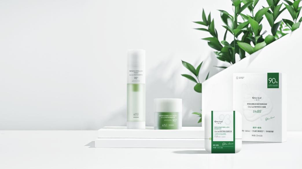 最终,一叶子“纯净美容”第一个大单品“修护修色次抛精华液”出炉。并衍生出面膜、面霜和精粹水三个单品,形成了修护修色系列产品。