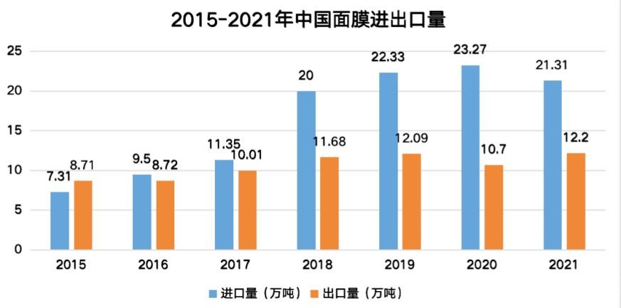 在这样的背景下,2017年后中国市场面膜的进口量持续高速增长,从2017年之前的进口量和出口量相当,很快发展到进口量是出口量的2倍。