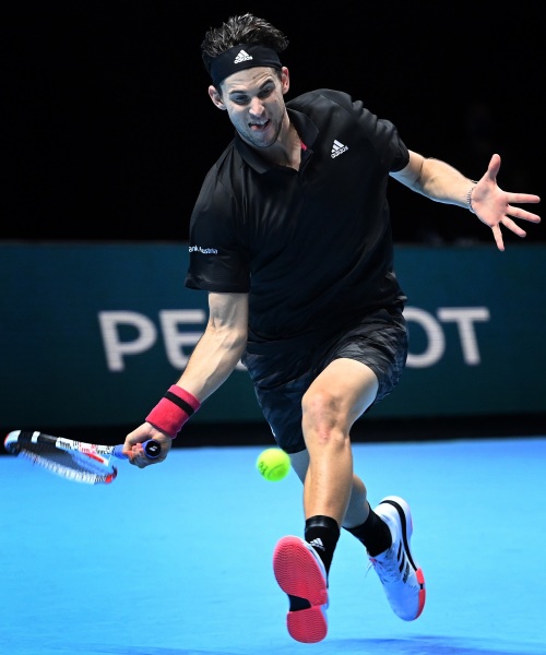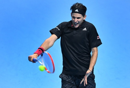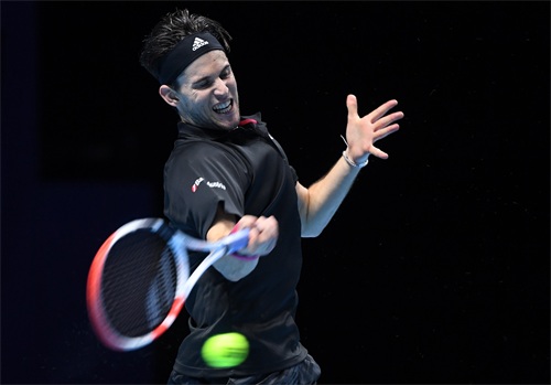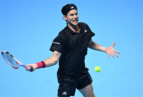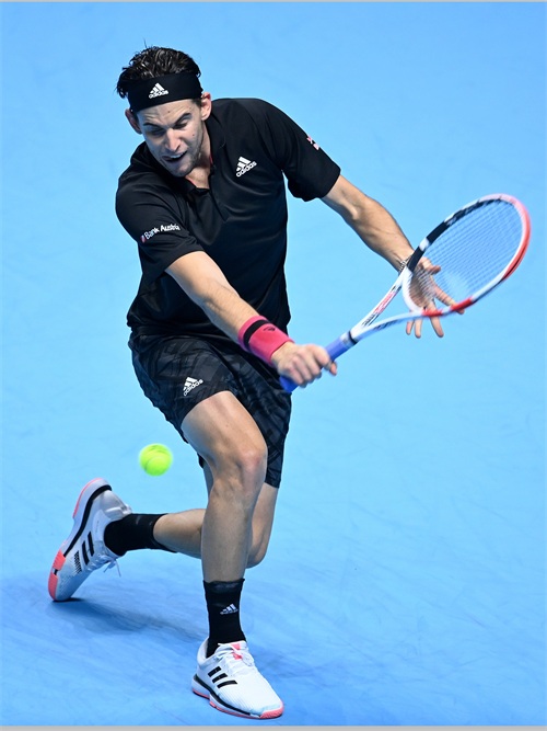 新华社照片,外代,2020年11月23日(外代二线)(5)网球——ATP年终总决赛:梅德韦杰夫夺冠11月22日,蒂姆在比赛中回球。当日,在英国伦敦进行的2020ATP世界巡回赛年终总决赛的比赛中,俄罗斯选手梅德韦杰夫以2比1战胜奥地利选手蒂姆,获得冠军。新华社/欧新