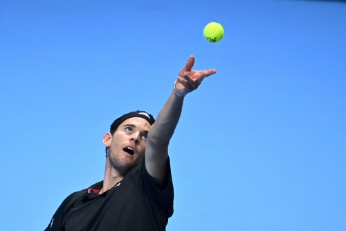 新华社照片,外代,2020年11月23日(外代二线)(7)网球——ATP年终总决赛:梅德韦杰夫夺冠11月22日,蒂姆在比赛中发球。当日,在英国伦敦进行的2020ATP世界巡回赛年终总决赛的比赛中,俄罗斯选手梅德韦杰夫以2比1战胜奥地利选手蒂姆,获得冠军。新华社/欧新