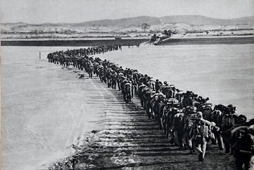 1950年10月19日,段显德随中国人民志愿军第四野战军某部跨过鸭绿江。寒冷的天气和陌生的地形给行军带来了极大困难。志愿军战士们每天要负重前进,穿过茂密的松林和陡峭的山路。为了避免被敌机发现,部队只能在夜间行军,白天隐蔽休息。
