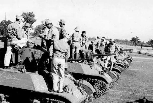 3、三个战车连每连有三个战车排,每排有M3A3轻型(15吨)的坦克五辆,全连有坦克十七辆,每辆坦克上有口径为三十七厘米的炮一门、重机枪三挺、报话机二台。每辆坦克携带炮弹七十三发、重机枪子弹七千五百发。车内乘坐四人,每人配备冲锋枪一支及子弹若干发。