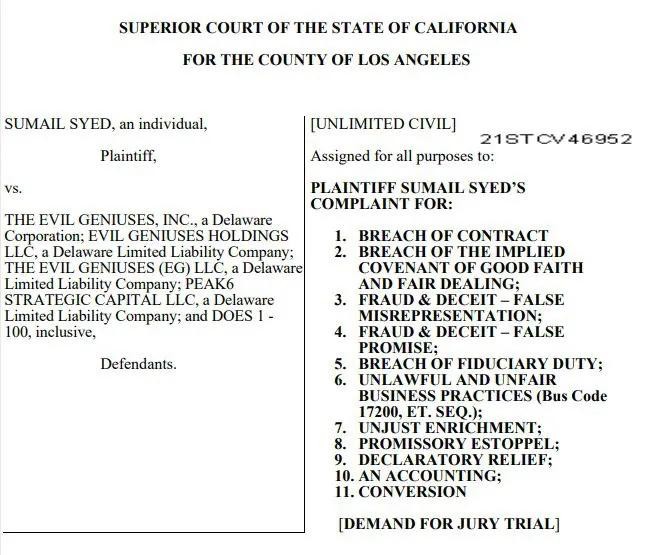 其实自2019年底以来,EG就开始被爆各种负面消息。先是离职员工爆料新任CEO管理混乱。其后,DOTA2分部前队员SumaiL与老东家对簿公堂;CS分部变阵毫无起色,甚至在EPL S13至S16创下十六连败;无畏契约分部拿下世界冠军后被俱乐部要求降薪。