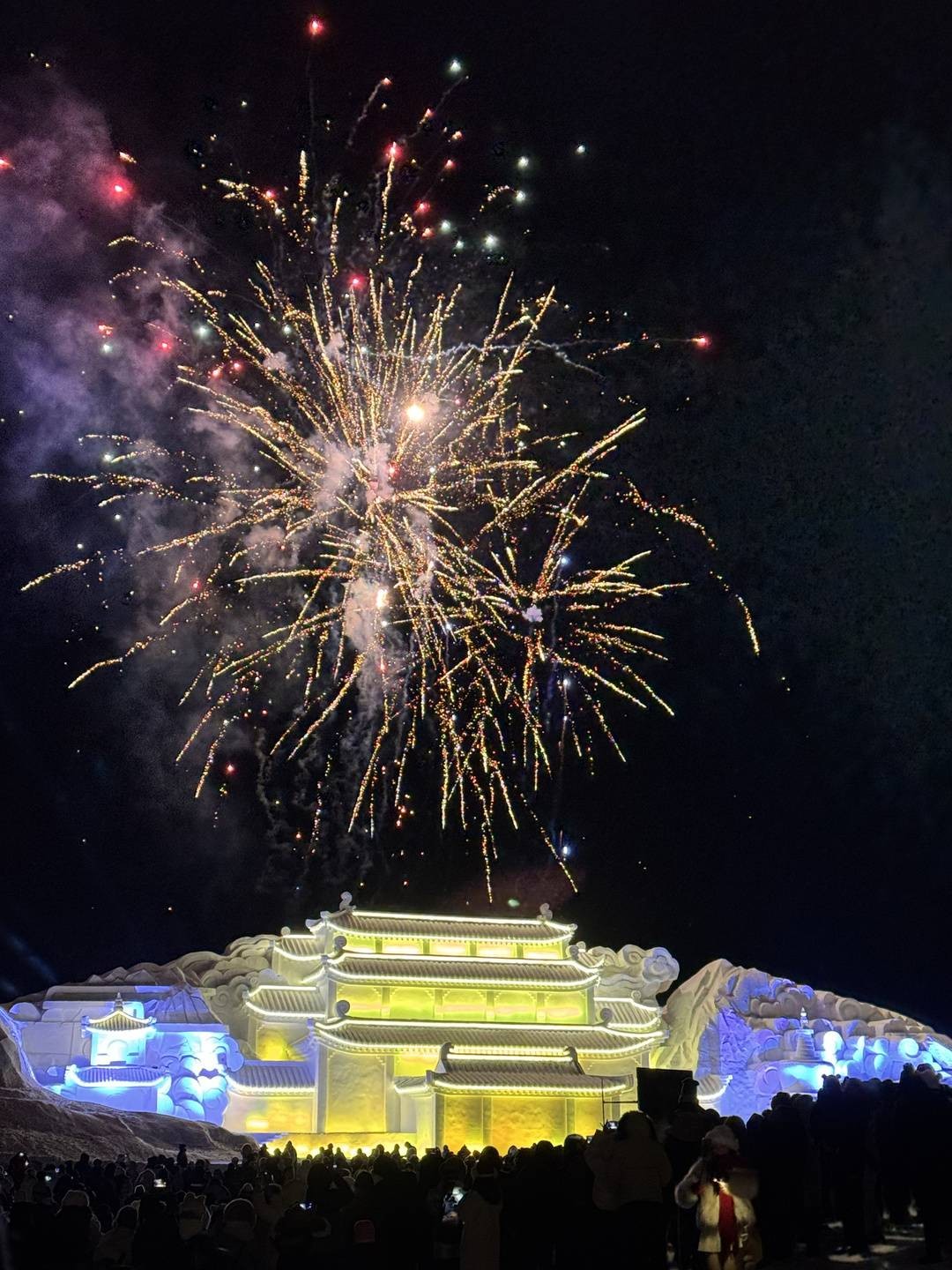 “雪地烟花很好看,现场也有很多年轻人,大部分都是《盗墓笔记》的书迷,大家都是来接小哥(张起灵)的。”彭女士告诉记者,第一声烟花炸响后,大家都争相跑到雪雕前参观。