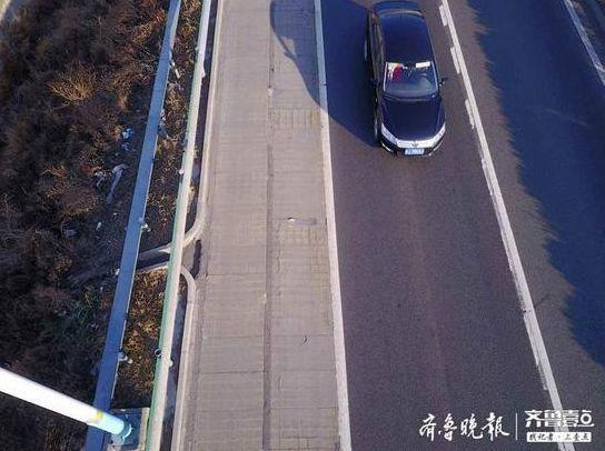 12月11日,航拍济南南绕城高速的光伏试验段。与刚开通时相比,原来在快车道的路面被清除,只在应急车道上保留了一部分光伏电池。