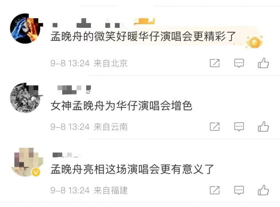 不少网友表示 " 孟晚舟亮相让演唱会更有意义了 "" 大佬间的顶峰相见 "。