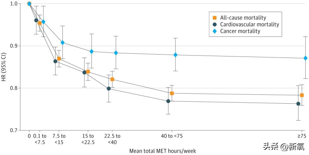 △每周平均MET小时与全因、心血管、癌症死亡风险之间的关系。