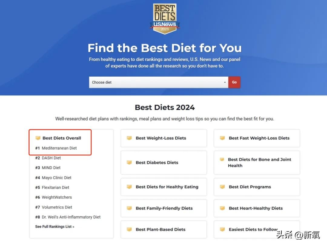 △《美国新闻与世界报道》发布了2024年最佳饮食榜单,地中海饮食再次登顶榜首。