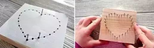 2:根据小点的位置将钉子钉一部分进入木头里,每颗钉子留出的高度需要差不多。