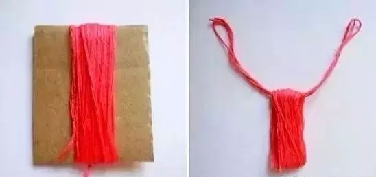 1:把毛线缠绕在厚纸板上,把单独的一缕毛线从毛线和纸板中间穿过。