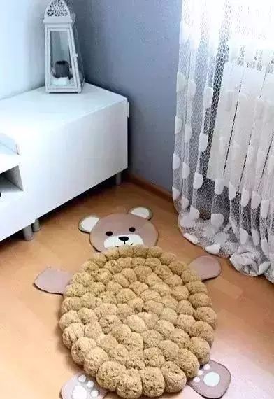 不同颜色的毛球可以拼接成不同样子的地毯,既美观又实用。