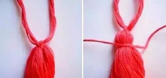 5:把两条长线打结,剪去多余部分,一个可爱的小毛球就做好了。