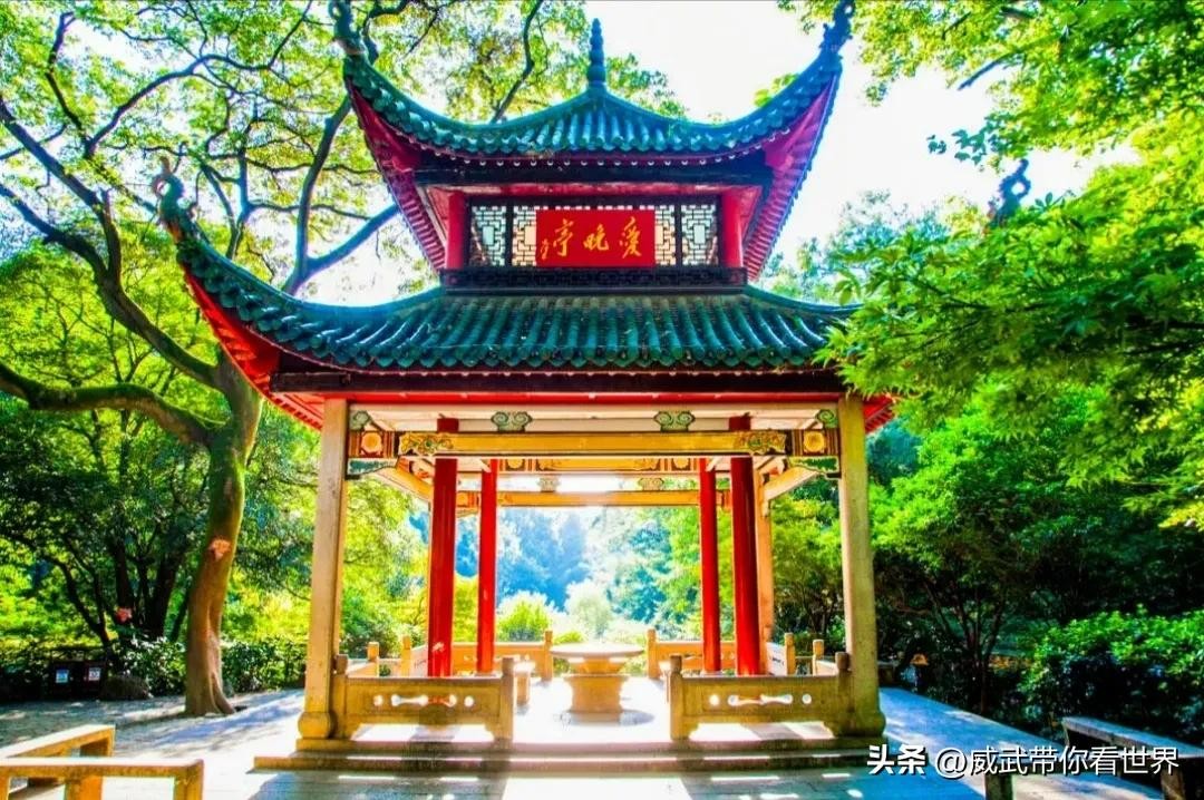 从书院屈子祠出来往岳麓山走就是著名的爱晚亭,创建于乾隆年间,原本名叫红叶亭,后湖广总督毕沅据唐代诗人杜牧《山长》:“停车坐爱枫林晚,霜叶红于二月花”,改名为爱晚亭。毛主席青年时代常与好友一起聚会与爱晚亭下,纵谈时局,探求真理。1952年湖南大学重修爱晚亭时,毛主席接受了校长李达之请,重题亭名。爱晚亭为八柱重檐古亭,顶部覆盖绿色琉璃瓦,攒尖宝顶,内柱为红色木柱,外柱为花岗石方柱,天花彩绘藻井。爱晚亭在我国亭台建筑中,影响甚大,堪称亭台之中的经典建筑,与宋代建于安徽滁县的醉翁亭,明代建于杭州西湖的湖心亭,清代建于北京的陶然亭并称中国四大名亭。