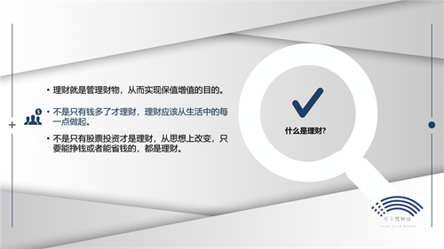 要想知道如何去理财,那么首先我们要明白什么是理财?理财不光是目前火热的股票市场、基金市场,而是管理自身的人财物,从而实现保值增值的目的。人需要增值吗?明显的需要呀,当你提升自己的技能、情商、见识等等之后,你的收入获得提高,不也是一种增值吗!