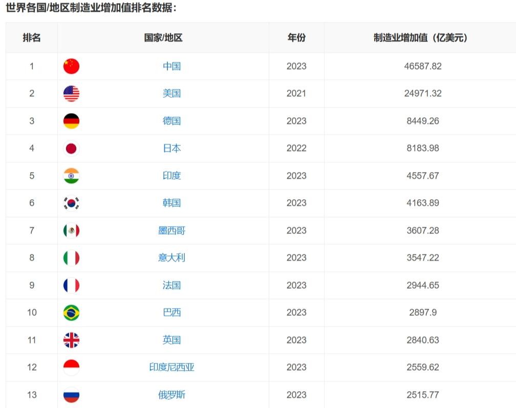 2023年俄罗斯制造业的规模大约是2500亿美元,只有中国48000亿美元的19分之一。