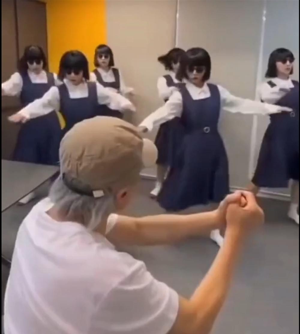 在现场,他虽然大部分时间都坐着,但一有机会就起身示范动作,给那些年轻女演员们传授经验。