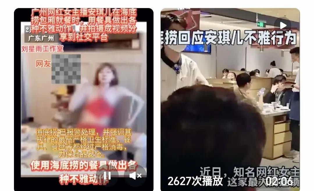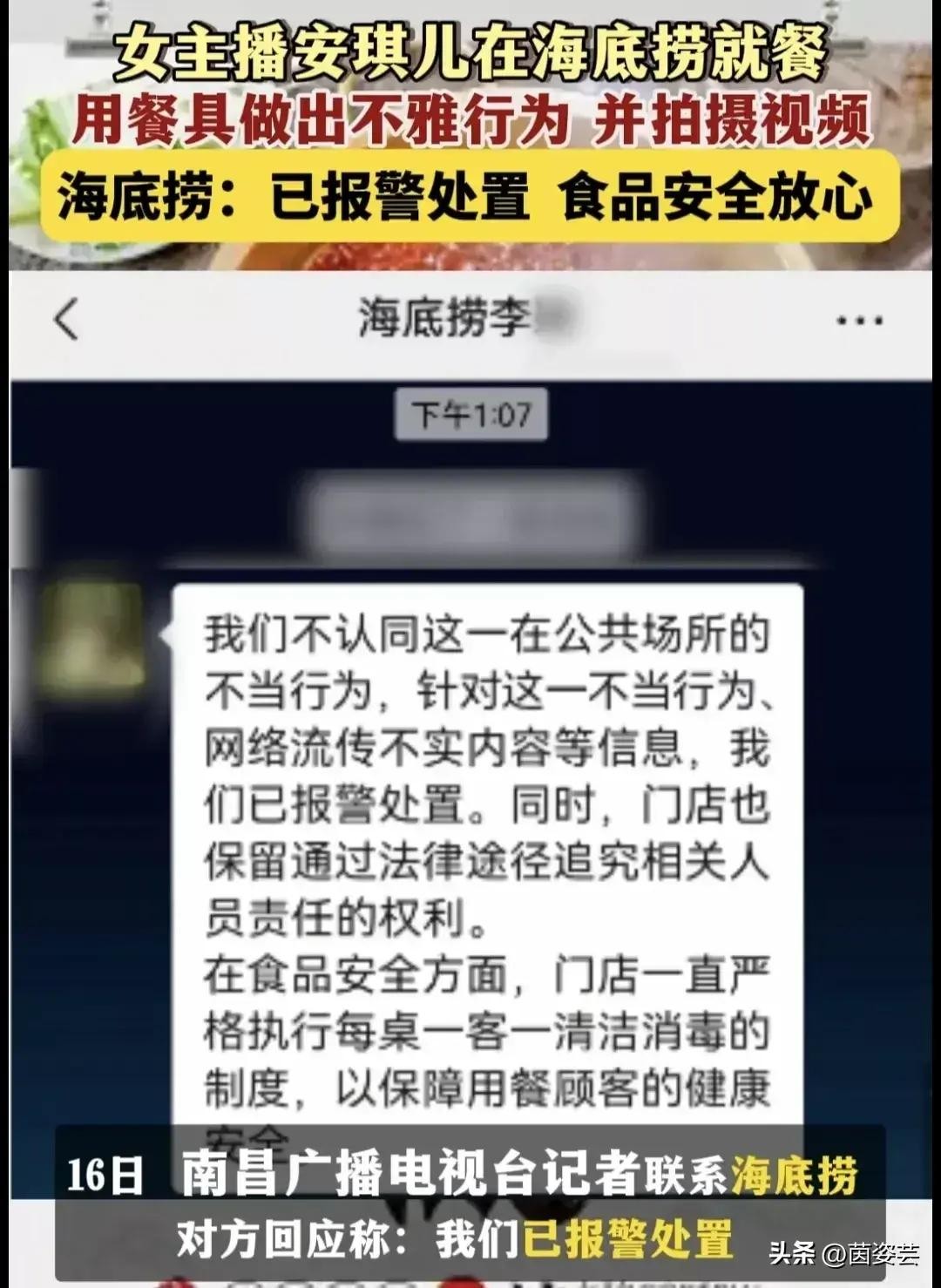 女主播安琪儿海底捞不雅行为,网友纷纷谴责!海底捞回应:已报警