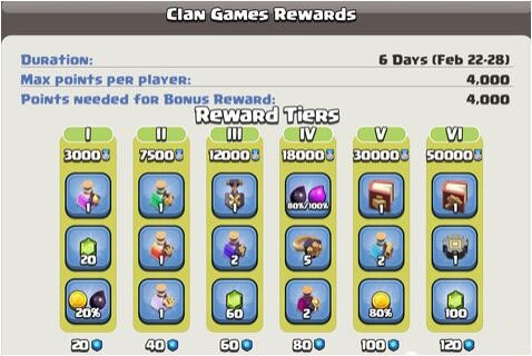 这一次的竞赛奖励依旧分为六个任务阶段,玩家单人可贡献的最大积分为4000分,而第六阶段的任务所需积分则为50000积分,也就是说满打满算需要13个部落成员才能完成。就奖励方面,这可能是普通月份中奖励最为丰富的一次,第五阶段以及第六阶段均有一本魔法书,分别是建筑之书以及法术之书。刚升13本玩家们对于建筑之书需求尤其高,大量的建筑物都需要进行升级,可以大大缓解资源囤积的尴尬;而魔法之书正好可以帮助刚生13本的玩家快速升满一项法术,以便于部落联赛快速对位打老牌13本对手。